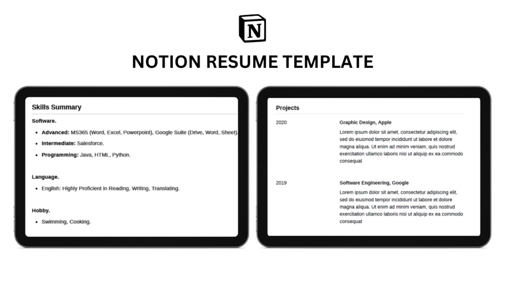 - Showcase your Contact Information, About Me, Education, Experience, and Skills Summary (Software, Language, Hobby) in a visually appealing format.
