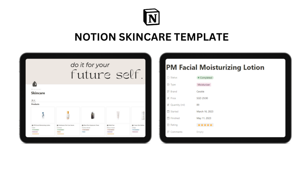 Elevate your skincare routine with our all-in-one Skincare Template. From tracking products and progress to rating and comments, our template keeps you organized and motivated. Achieve your skincare goals with ease and embrace the path to radiant, healthy skin.