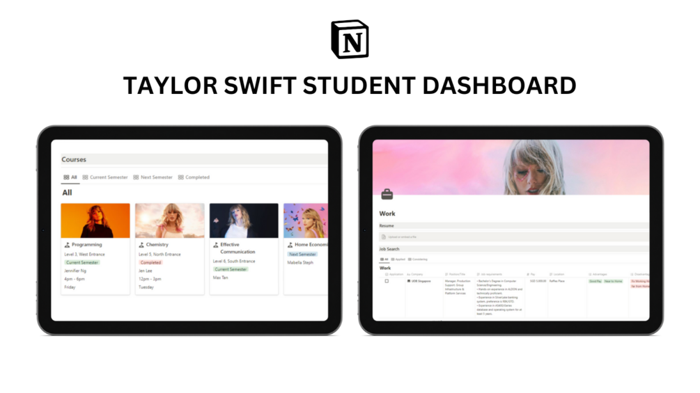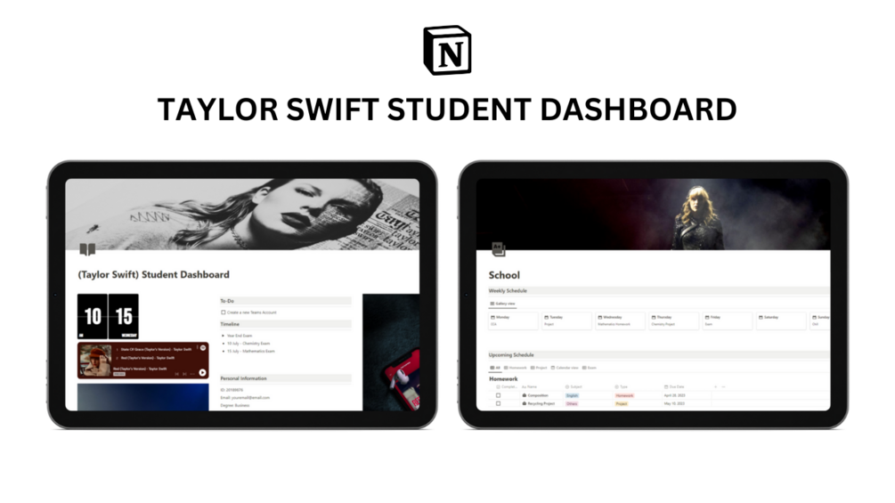 Notion Taylor Swift Student Dashboard